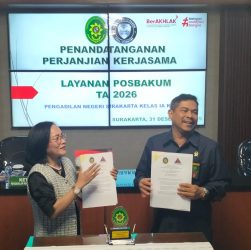 Foto : Dokumentasi SOLO, SUARASOLO.id – Ketua PN Solo, Dr Achmad Satibi SH MH bersama Ketua LBH Solo Justice & …