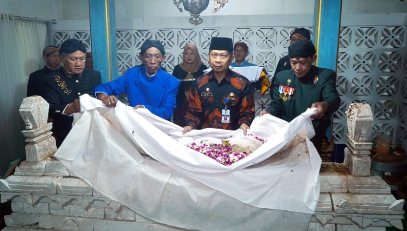 Asisten I Setda Kabupaten Boyolali Muhammad Arief Wardianta mengganti kain penutup makam (buka luwur). Jumat (18/7/2025) Foto: Humas Pemkab Boyolali