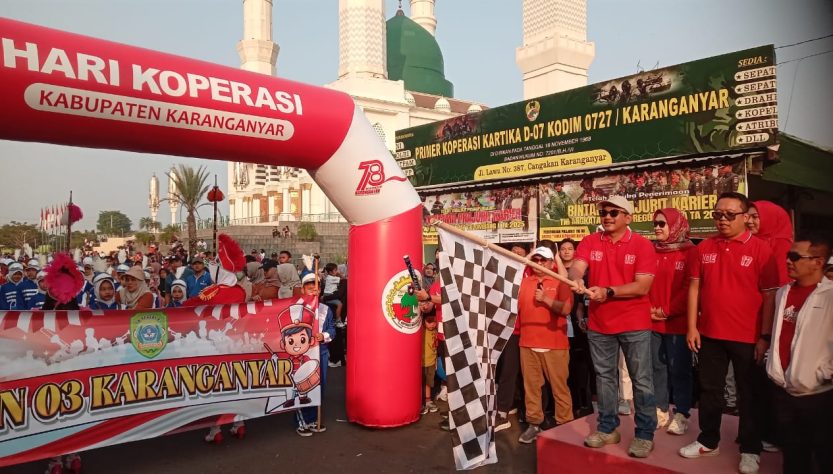 SOLO, SUARASOLO.ID , Jalan Sehat memperingati Hari Koperasi Ke-78 digelar di Alun2 Kabupaten Karanganyar, Sabtu 26 Juli 2025.