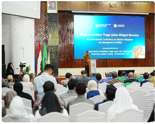 Dalam pembukaan 3rd International Conference on Disaster Mitigation and Management (ICDMM) di Universitas Andalas (Unand), Wakil Menteri Pendidikan Tinggi, Sains, dan Teknologi (Wamendiktisaintek), Fauzan menegaskan bahwa perguruan tinggi harus menjadi garda terdepan dalam memperkuat kesiapsiagaan menghadapi ancaman Megathrust Mentawai.