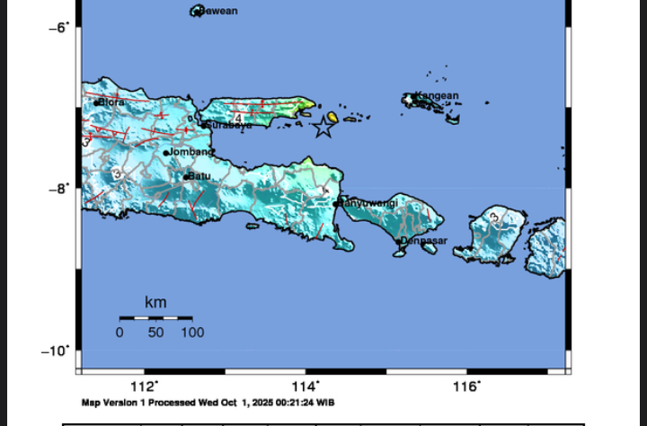 Berdasarkan laporan Badan Meteorologi, Klimatologi, dan Geofisika (BMKG), gempa berkekuatan magnitudo 6,5 terjadi pukul 23.49 WIB. Titik pusat gempa itu berada di koordinat 7.25 Lintang Selatan (LS) dan 114.22 Bujur Timur (BT) atau 50 kilometer ke arah tenggara dari Kabupaten Sumenep.
