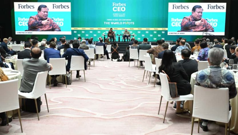 Presiden Republik Indonesia Prabowo Subianto menghadiri Forbes Global CEO Conference 2025 yang berlangsung di Hotel The St. Regis, Jakarta, pada Rabu, 15 Oktober 2025. Foto: BPMI Setpres/Kris