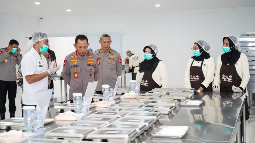 Kapolri juga meninjau langsung fasilitas pengolahan pangan di lokasi dan memastikan seluruh proses dari penerimaan bahan baku, penyimpanan, hingga distribusi berjalan dengan standar kebersihan dan keamanan pangan.