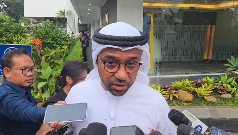 Duta Besar PEA untuk Indonesia Abdulla Salem Al-Dhaheri memberikan keterangan pers kepada awak media di kompleks Istana Kepresidenan Jakarta, pada Selasa, 21 Oktober 2025. Foto: BPMI Setpres