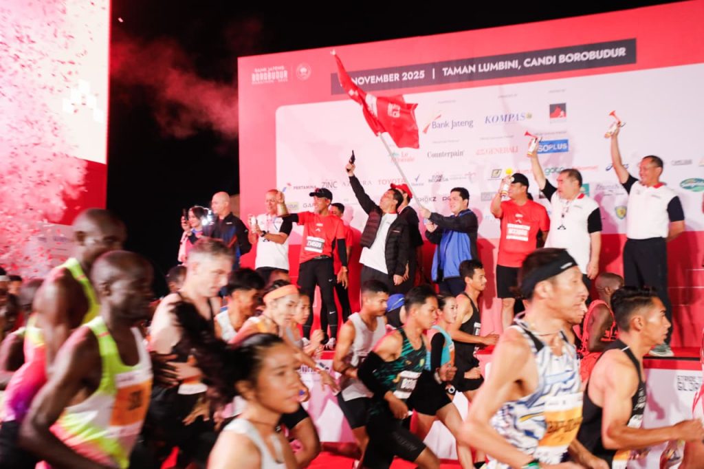 “Borobudur Marathon itu sudah naik kelas. Sekarang sudah elite marathon, artinya sudah kelas dunia. Dari 38 negara yang ikut, secara tidak langsung akan menarik Jawa Tengah menjadi tempat investasi. Tidak hanya untuk marathon tetapi juga investasi terkait dengan wisata, ada UMKM dan lain sebagainya,” kata Ahmad Luthfi usai melepas belasan ribu pelari dalam event Bank Jateng Borobudur Marathon 2025 di Taman Lumbini, Kawasan Candi Borobudur, Magelang, Minggu pagi, 16 November 2025.