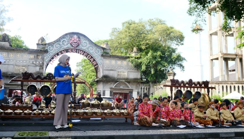 SOLO, SUARASOLO.id — Wakil Wali Kota Surakarta, Astrid Widayani secara resmi melaunching Program “Karawitan Dolanan Macapat Mantab (Kado Mama)” ditandai dengan pemukulan gong di Plasa Sriwedari, Solo, Minggu (23/11/2025).