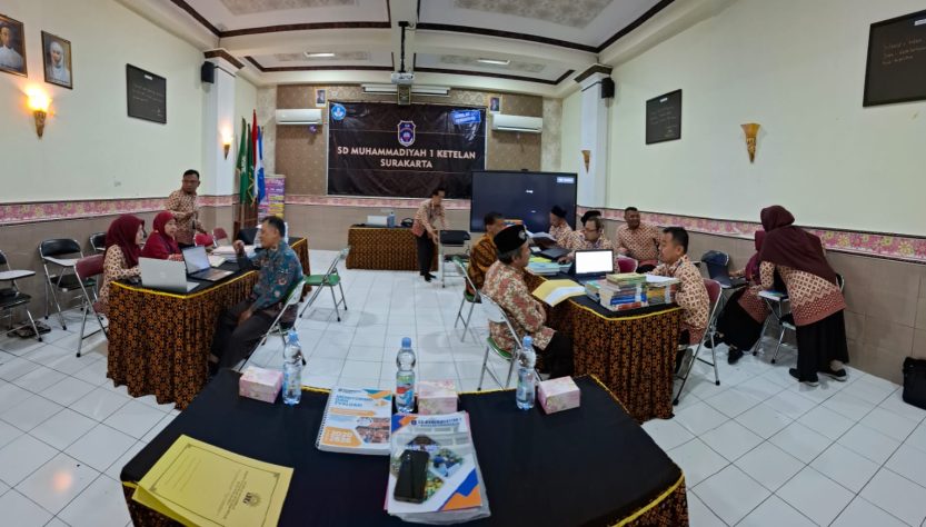 SD Muhammadiyah 1 Ketelan Surakarta kedatangan tamu dari Majelis Pendidikan Pimpinan Daerah Muhammadiyah Kota Surakarta untuk bersilaturahmi monitoring dan evaluasi (monev) di aula sekolah sehat jalan Kartini Nomor 1 Ketelan Barat Pura Mangkunegaran, Kamis (8/1/2026).
