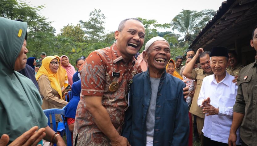 Warga pun tertawa dan bertepuk tangan. Gubernur tersenyum lebar sembari merangkul Mudin Kasdi yang terlihat begitu bahagia.