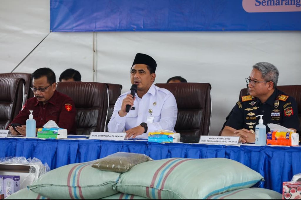 “Atas nama Pemerintah Provinsi Jawa Tengah dan masyarakat Jawa Tengah, kami sangat mendukung ditegakkannya aturan-aturan yang berkaitan dengan kepabeanan, ekspor, dan impor. Penegakan yang tegas dan transparan akan berdampak positif terhadap pertumbuhan ekonomi,” ujar Taj Yasin saat menghadiri konferensi press di Tempat Penimbunan Pabean Bea Cukai Tanjung Emas, Kota Semarang pada Rabu, 25 Februari 2026.