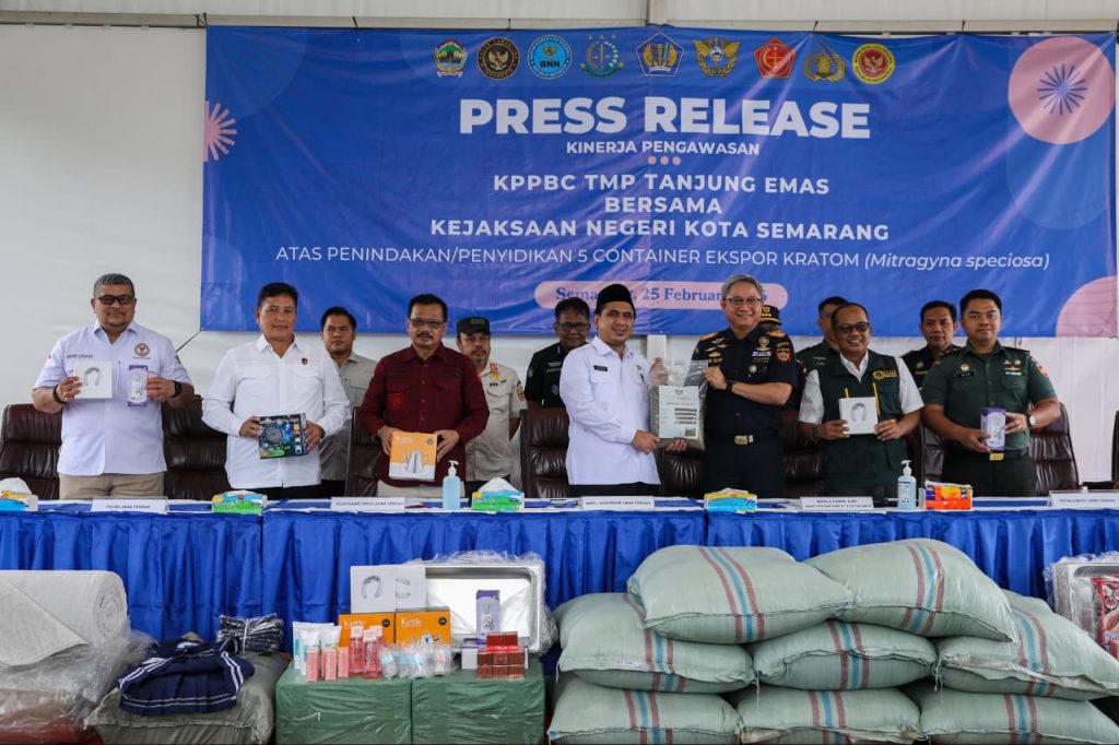 SEMARANG, SUARASOLO.id – Sinergi aparat penegak hukum berhasil membongkar upaya penyelundupan ekspor komoditas kratom sebanyak 90,2 ton di Pelabuhan Tanjung Emas, Semarang.