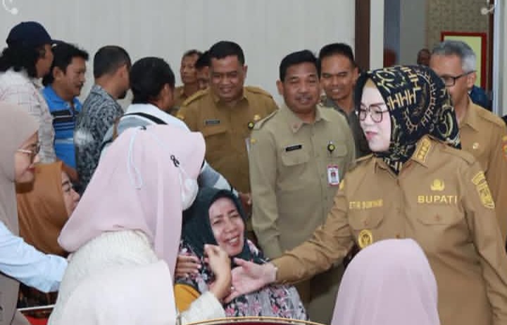 Bupati Sukoharjo Etik Suryani memberikan sambutan pada acara sosialisasi pembangunan Pujasera. Foto : Humas Sukoharjo