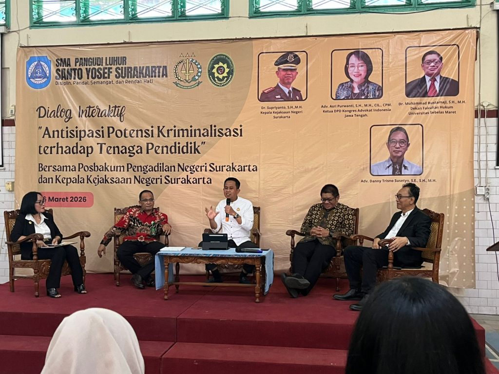 SOLO, SUARASOLO.id – Gelombang kekhawatiran terkait aksi kriminalisasi terhadap tenaga pendidik, memicu antusiasme luar biasa dari ratusan guru di wilayah Jawa Tengah dan DIY. Sebanyak lebih dari 300 guru berkumpul di SMA Pangudi Luhur St. Yosef, Kota Solo, Jumat (6/3), untuk mengikuti diskusi interaktif mengenai perlindungan hukum, dalam profesi mereka.