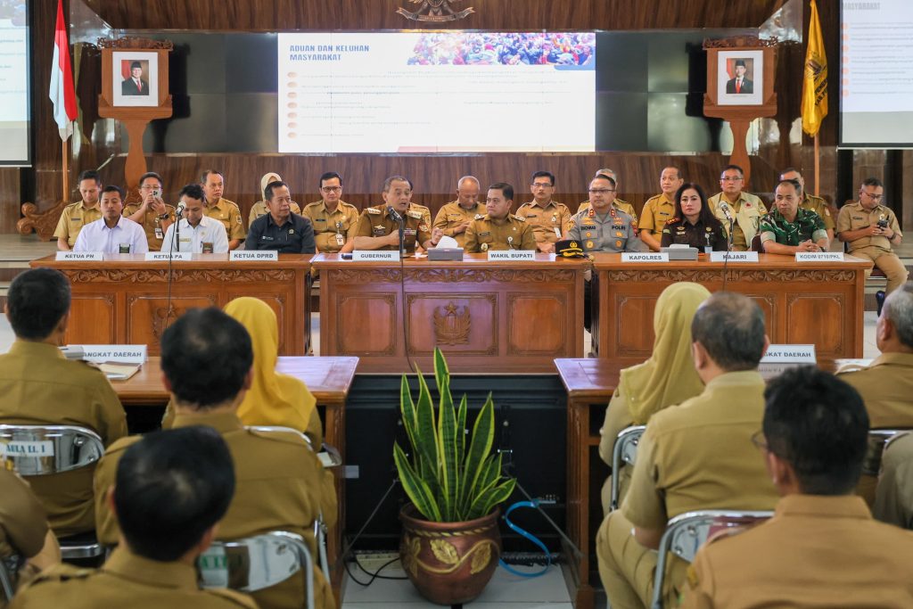 PEKALONGAN, SUARASOLO.id – Gubernur Jawa Tengah Ahmad Luthfi memberikan pengarahan kepada jajaran Pemerintah Kabupaten Pekalongan, Senin, 9 Maret 2026. Ahmad Luthfi meminta kepada Pemkab Pekalongan untuk tetap mengoptimalkan pelayanan kepada masyarakat, di tengah dinamika yang terjadi di daerah tersebut.