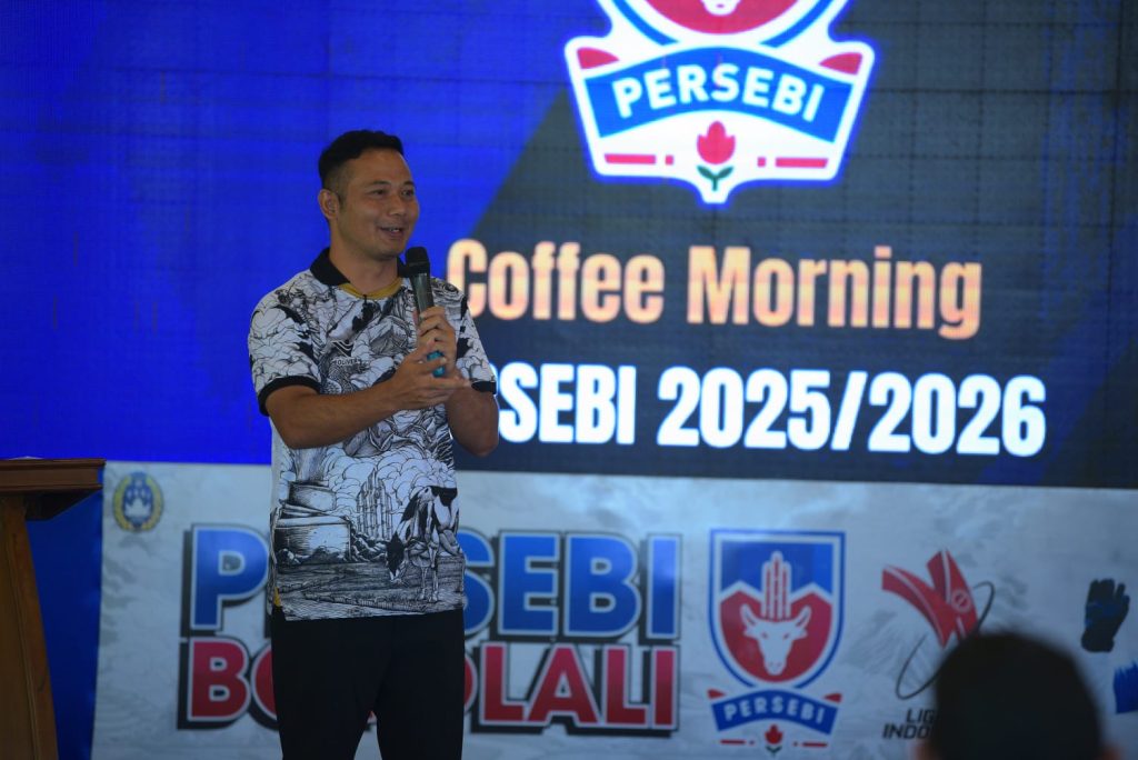 Manajer Persebi Boyolali, Aldila Fajri, menyatakan optimisme tinggi dalam acara Coffee Morning yang digelar di Pendopo Alit Rumah Dinas Bupati Boyolali, Selasa (21/4/2026). Untuk memperkuat kedalaman skuad, Persebi resmi mendatangkan pelatih kepala baru, Indrianto Nugroho, beserta enam pemain anyar.