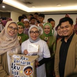 Menteri Pemberdayaan Perempuan dan Perlindungan Anak RI Arifatul Choiri Fauzi (tengah) bersama Penerima Apresiasi SATU Indonesia Awards Bidang Pendidikan Tahun 2024 Hana Maulida (kiri) dalam pelaksanaan Workshop Edukatif pada hari ini (26/7).