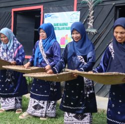 Menampi beras ketan saat menampilkan atraksi Manumbuak Ampiang yang menjadi salah satu produksi khas Kampung Berseri Astra Tabek Talang Babungo …